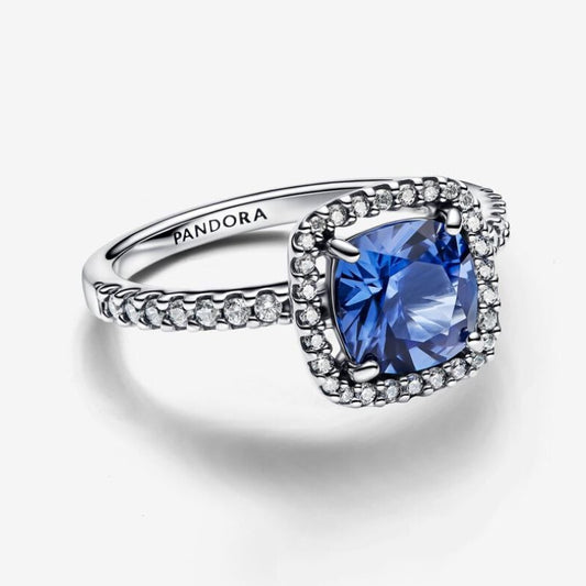 Anello Punto Luce Quadrato Blu Grande