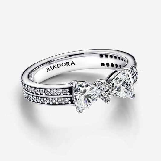 Anello Doppia Fascia Pavè con Fiocco Luminoso