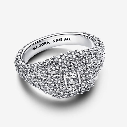 Anello Punto Luce Quadrato e Pavè