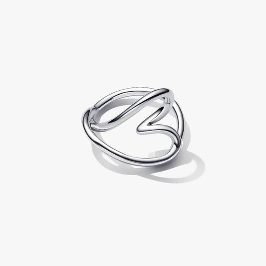 Anello Cerchio Linea Sinuosa con Perla d'Acqua Dolce Coltivata e Pavè