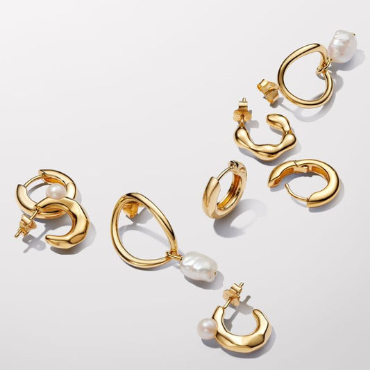 Orecchini Linea Sinuosa Circolare con Perla d'Acqua Dolce Coltivata Pendente