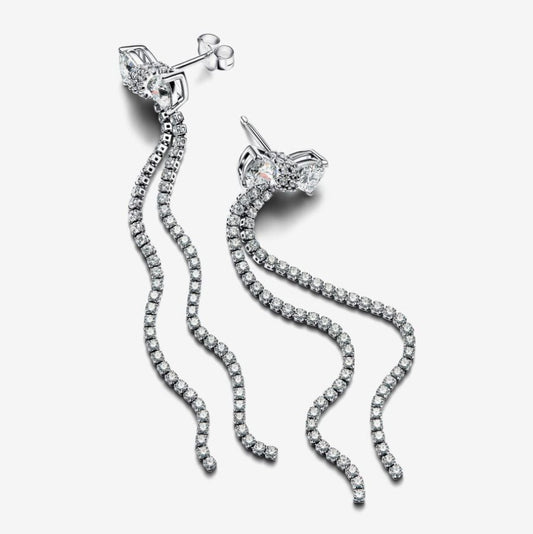 Orecchini Pendenti Fiocco Luminoso e Pavè a Cascata