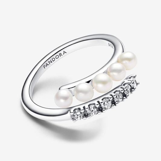 Anello Intreccio con Perle d’Acqua Dolce Coltivate e Pavè