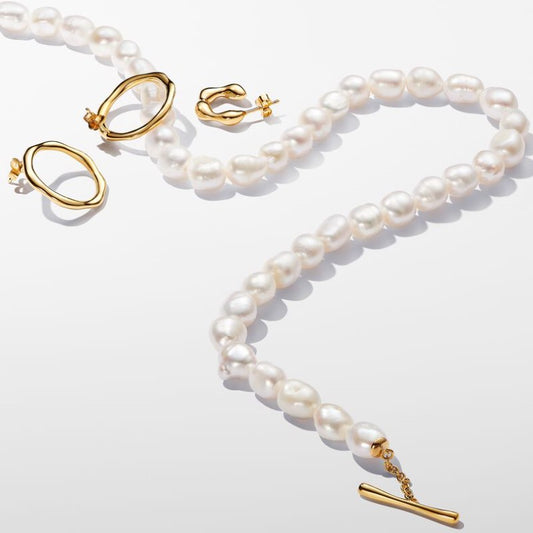 Orecchini Cerchi Aperti Linea Sinuosa con Perla d'Acqua Dolce Coltivata