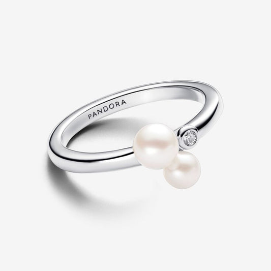 Anello Doppia Fascia con Perla d’Acqua Dolce Coltivata e Pavè